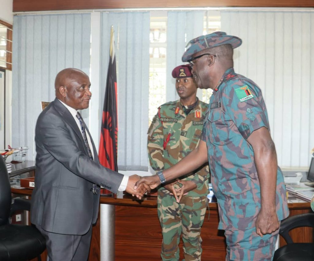 Malawi Defence Minister Harry Mlekanjala Mkandawire reprented President Dr Lazarus Mc Cathy Chakwera in a meeting with Zambia National Service (ZNS) Delegation.