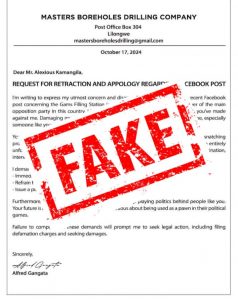 Gangata said the letter in circulation lacks authenticity, bears no company’s official letterhead and a genuine signature.