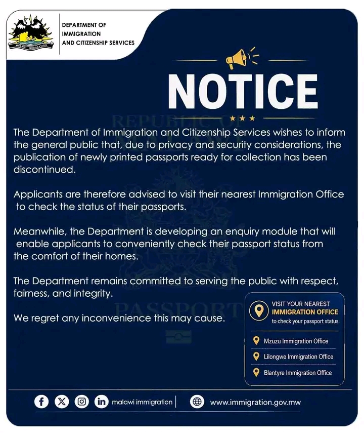 The Department of Immigration and Citizenship Services has stopped publishing lists of passports ready for collection, a move that has sparked concern over transparency and access to information in public service delivery.