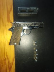 During a raid at a residence in Sozibele Lines, police recovered a blue Toyota Vitz (registration number NA 6601) believed to have been used during the robberies. Officers also seized a pistol loaded with six live rounds, an additional 52 rounds of ammunition, two mattresses, a home theatre system, a 42-inch plasma television, and 40 bags of cement all believed to be connected to the crimes.